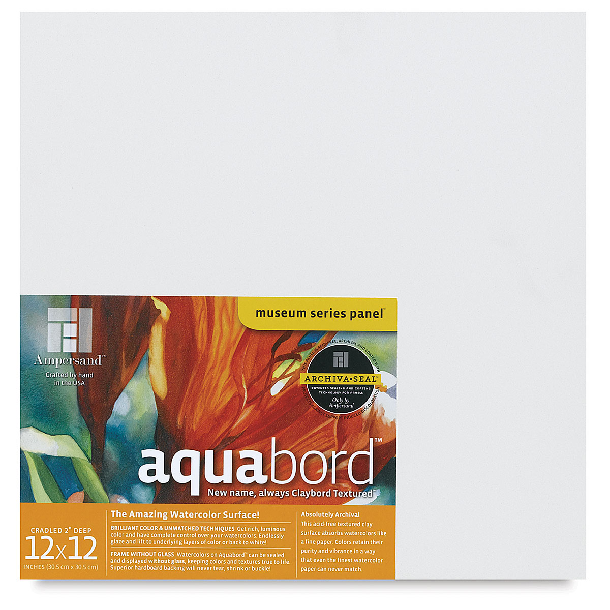 Wil je aan de slag met aquarel? Kies dan voor het Ampersand Aquarelboard. Dit natuurwitte, zeer zuigende bod, zorgt voor een perfecte kleurweergave met een lichtgekorrelde oppervlakte. Je kan eindeloos lagen over elkaar aanbrengen, zonder dat de oppervlak verzadigd raakt of gaat vezelen. Het aquabord is 3 mm dik.