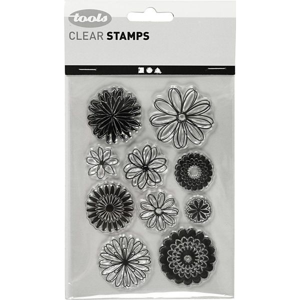 Vel met verschillende motieven silicone stempels. Te gebruiken met een acryl stempelblok