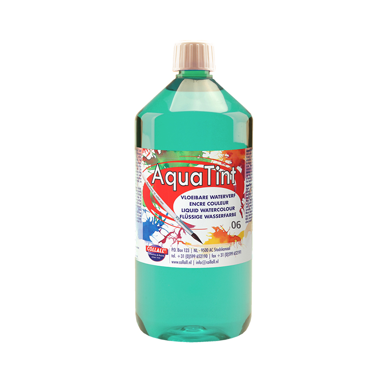 Collall AquaTint is een sterk geconcentreerde vloeibare waterverf met hoogwaardige kleurstoffen. AquaTint geeft kleur aan papier, filterpapier, tissues, karton (eierdozen), hout, en andere absorberende materialen (wattenbollen/schijfjes). Aquatint is niet lichtecht.