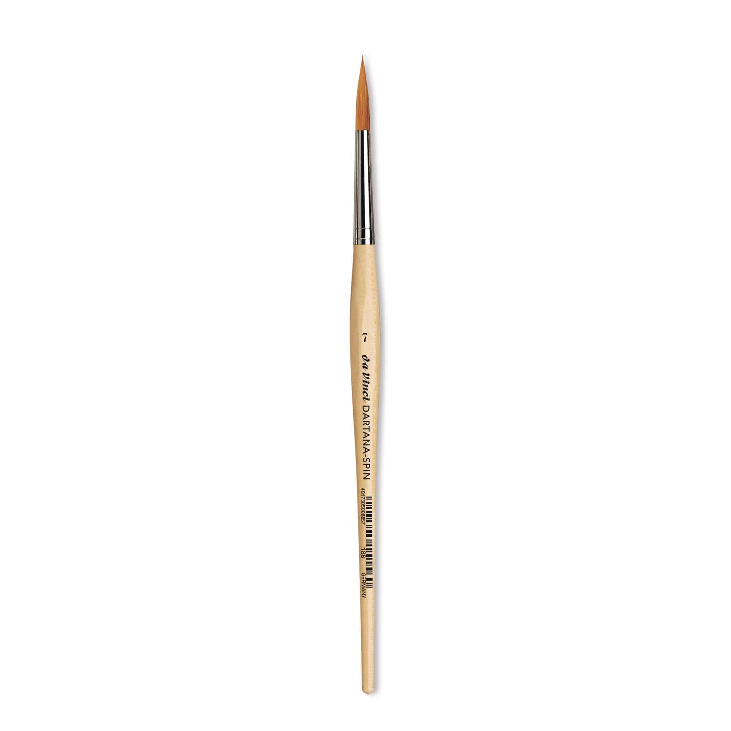 Het davinci dartana-spin penseel uit de serie 188 heeft een zorgvuldig vervaardigde, langwerpige punt. Het penseel is vervaardigd met een gladde, fijne, goudkleurige vezel, gezet in een zilverkleurig buis. Dankzij de zorgvuldig uitgewerkte, langwerpige zachte punt, gecreëerd met de succesvolle SPIN-vezelcompositie, verdeelt dit penseel vloeibare kleur snel en nauwkeurig.
