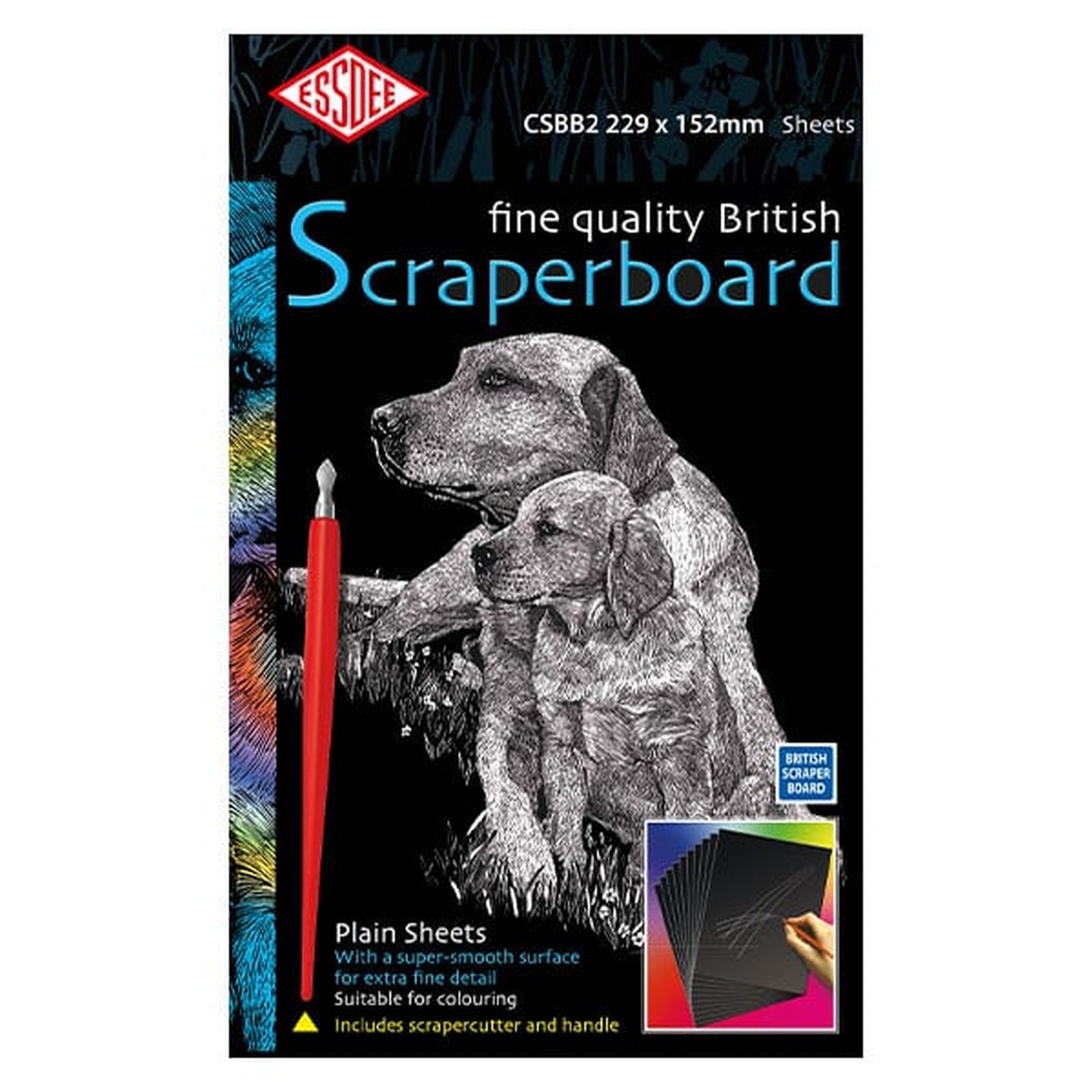 Essdee scraperboard, zijn kraskaarten om je eigen scratchwerk te maken. Kras de zwarte laag weg en je krijgt een witte tekening te zien. Een pak bevat 10 kaarten.