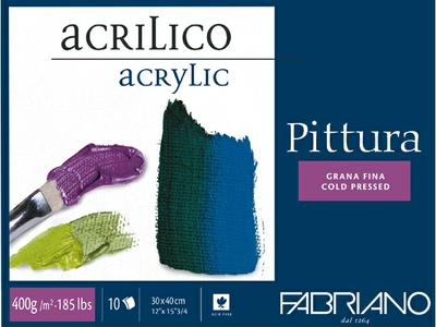 Fabriano Pittura acrylpapier gemaakt van callulose van topkwaliteit, welke zuurvrij is. Hierdoor zal het papier niet veranderen in de loop der tijd. Het papier is ideaal voor het werken met acrylverf en kan tevens ook gebruikt worden voor het werken met olieverf en tempera. Het papier is 400gr/m2 zwaar en is verkrijgbaar in losse vellen als op 4-zijdig verlijmde blokken.