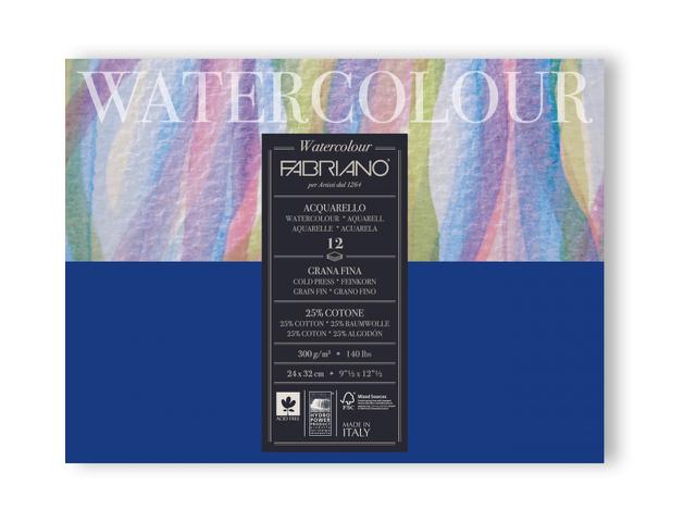 Het Fabriano aquarelpapier is gemaakt van een hoogwaardig mengsel van ligninevrije cellulose en katoen (25%). Het papier is zuurvrij. Het Fabriano studio aquarelpapier is ideaal voor, naast aquarel, ook tempera, gouache, acryl, inkt en om op te tekenen. Dit blok is 4-zijdig verlijmd.