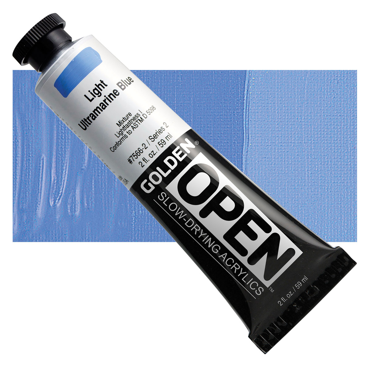 De Golden Open acrylverf, is een langzaamdrogende acrylverf. De verf is van een zeer hoogwaardige kwaliteit, met veel pigment. Het bijzondere van deze verf is dat de verf net wat langer nat blijft op het doek, zodat je er nog mee door kan werken. Ook is het fijn als het warmer buiten is. De Golden Open acrylverf is verkrijgbaar in 60ml tubes en diverse sets.