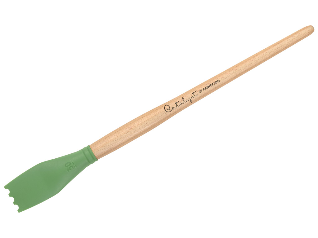 De Catalyst Blades zijn gemaakt van flexibele siliconen. Dat maakt het een bijzonder hulpmiddel, het is geen penseel, maar ook geen paletmes. De Catalyst Blade is op een houten penseelsteel geplakt. Ideaal voor de dikkere verfsoorten, zowel olieverf als acrylverf. Aangezien de Blade hittebestendig is, kan je de Catalyst Blade ook goed binnen de encaustic technieken gebruiken. Daarnaast kan de Blade ook tegen oplosmiddelen, veeg het eraf of, wanneer de verf gedroogd is, trek het er met gemak af.