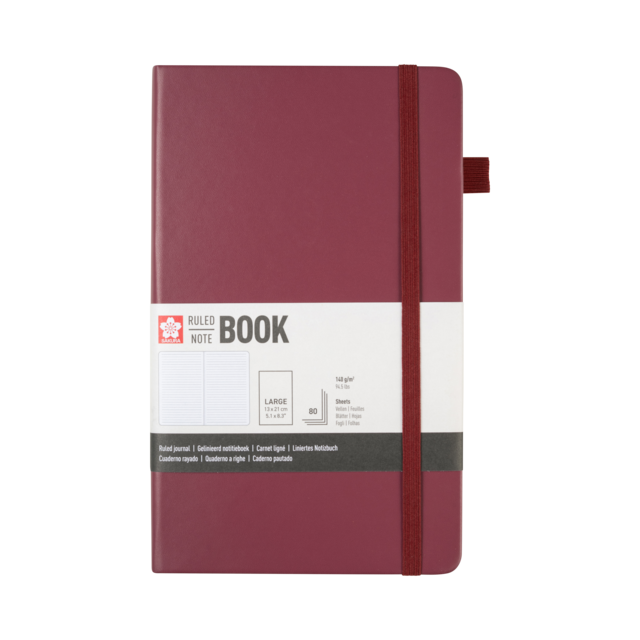 Het Sakura harde kaft notitieboek is een journal van hoge kwaliteit. Het notitieboek heeft 80 vellen FSC-gecertificeerd papier, licht crèmewit van kleur voor optimale leesbaarheid. De klassieke regelafstand (7 mm) zorgt voor comfortabel schrijven met voldoende ruimte om je handschrift gemakkelijk opnieuw te lezen. Het stevige 140 g/m² zuurvrije papier voor het maken van aantekeningen en het bijhouden van gegevens is vrijwel geschikt voor elk type peninkt, waardoor je schrijfwerk niet doordrukt. Het Sakura notitieboek heeft een moerbeikleurige harde kaft met afgeronde hoeken, een elastische sluitband, een leeslint en een uitbreidbare pocket aan de achterkant voor het verzamelen van losse aantekeningen. Afmeting: Large – 21 x 14 cm