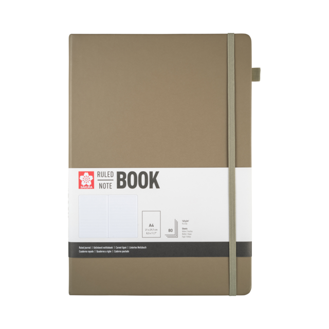 Het Sakura harde kaft notitieboek is een journal van hoge kwaliteit. Het notitieboek heeft 80 vellen FSC-gecertificeerd papier, licht crèmewit van kleur voor optimale leesbaarheid. De klassieke regelafstand (7 mm) zorgt voor comfortabel schrijven met voldoende ruimte om je handschrift gemakkelijk opnieuw te lezen. Het stevige 140 g/m² zuurvrije papier voor het maken van aantekeningen en het bijhouden van gegevens is vrijwel geschikt voor elk type peninkt, waardoor je schrijfwerk niet doordrukt. Het Sakura notitieboek heeft een dennennaaldkeurige harde kaft met afgeronde hoeken, een elastische sluitband, een leeslint en een uitbreidbare pocket aan de achterkant voor het verzamelen van losse aantekeningen. Afmeting: A4 – 29.7 x 21 cm