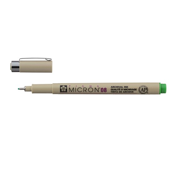 Pigma Micron-pennen zijn watervaste, permanente fineliners. De Pigma Micron 08 van Sakura zijn verkrijgbaar in 4 verschillende kleuren met een dikte van 0,5mm