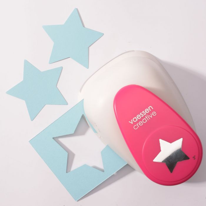 De figuurpons ster van Vaessen Creative, pons een sterretje van 67mmx72mm doorsnede. Het betreft een extra grote pons die leuke toevoegingen maakt voor bij het journalen, kaarten maken en scrapbooking.