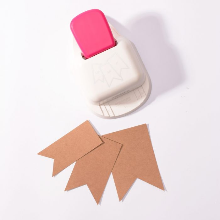 Met deze Vaessen Creative 3-in-1 label pons – in het Engels banner tag punch genoemd – maak je papieren vlaggetjes en labels in 3 verschillende maten met één pons. Stans een kleine vlag van 3,8 cm breed, middelgrote vlaggen van 5,1 cm breed en grote vlaggen van 6,4 cm breed. De lengte is naar wens te bepalen. Pons een vlaggetje voor slingers, cadeaus, geschenkverpakkingen, wenskaarten, plakboekpagina’s, decoraties en andere papieren knutselwerken.